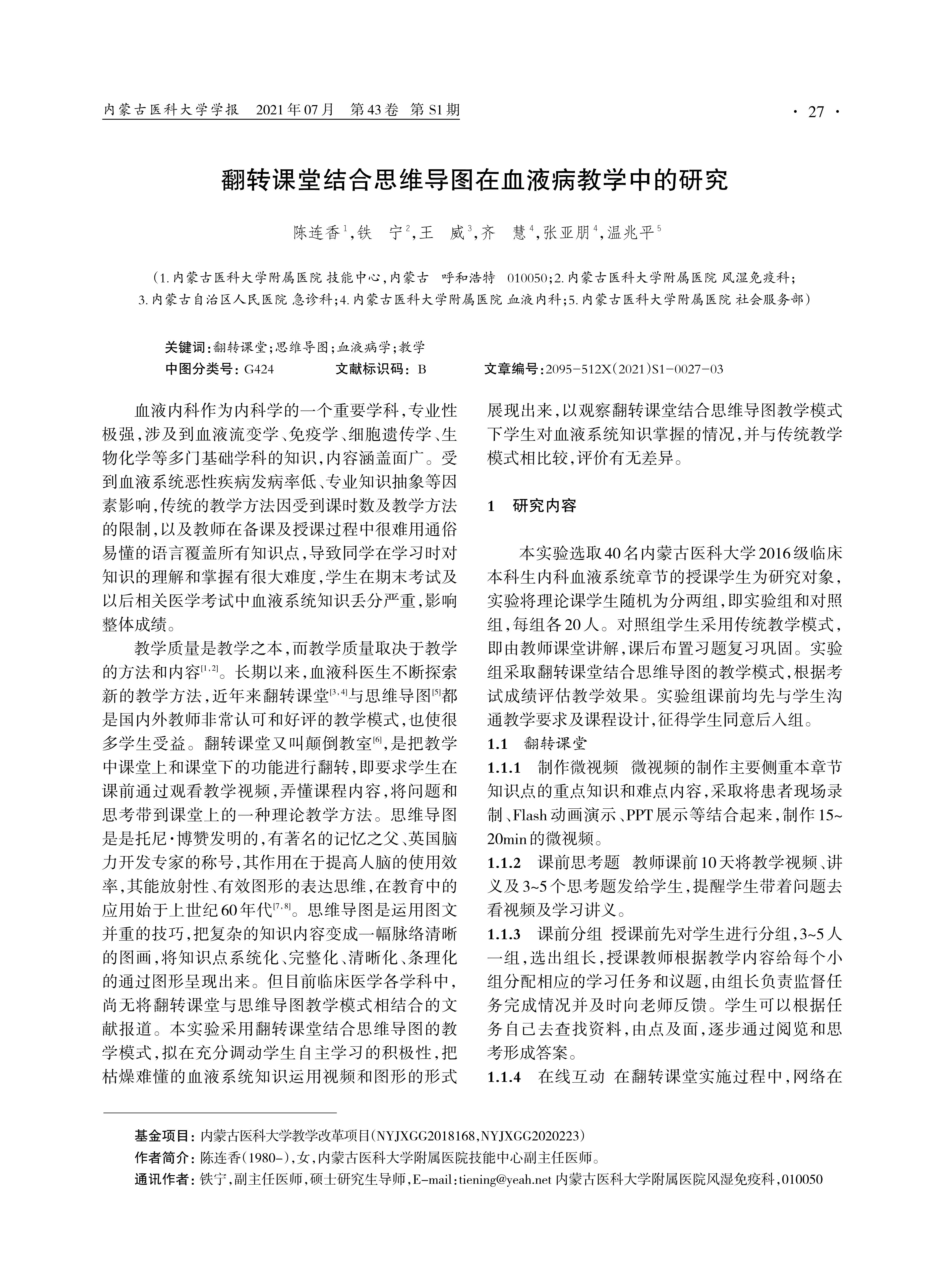 针对传统的教学模式不能很好适应本科生血液病学教学的情况,本实验采用思维导图联合翻转课堂的方法,来观察其对血液病临床教学的效果。实验结果显示翻转课堂结合思维导图的教学模式不仅学生的学习成绩明显提高,而且提升学生的学习主动性及教师的教学能力,从而达到教学相长。
