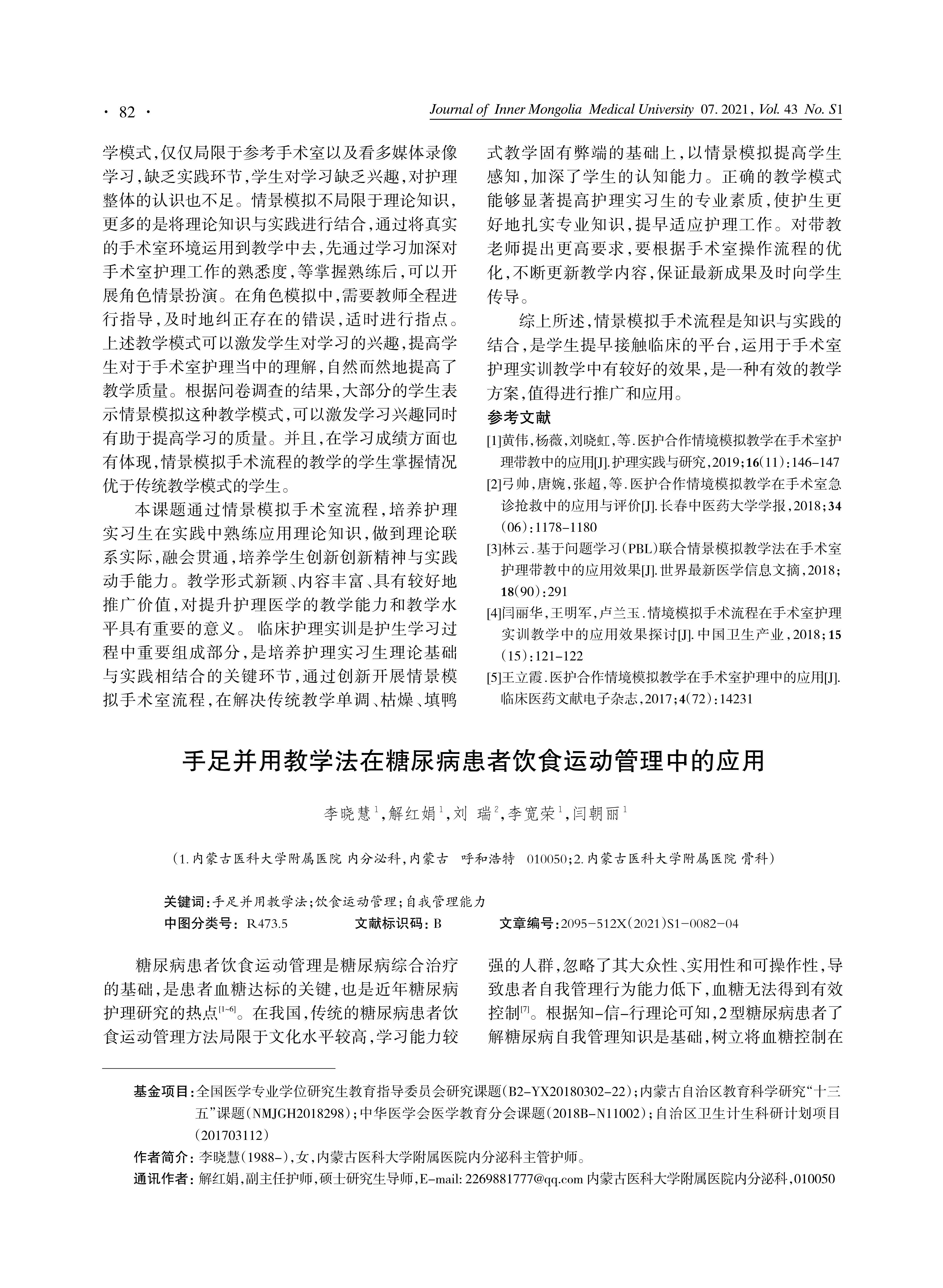 1.全国医学专业学位研究生教育指导委员会研究课题(B2-YX20180302-22) 2.内蒙古自治区教育科学研究“十三五”课题(NMJGH2018298) 3.中华医学会医学教育分会课题(2018B-N11002) 4.自治区卫生计生科研计划项目(201703112)